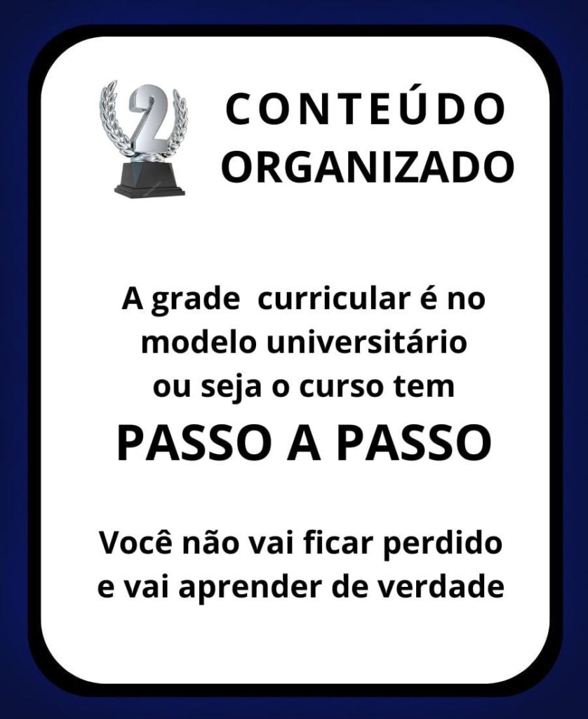 Assim que você concluir o curso você recebera um certificado válido em todo território nacional e registrado com seu nome, nome do curso, data de conclusão e carga horária de 60 horas.