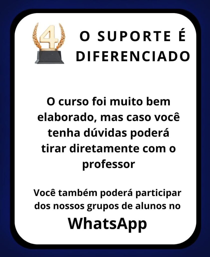 Sim, você terá contato direto com o professor pela plataforma do curso e vai poder tirar todas as suas duvidas sobre o curso, você também poderá participar dos grupos de alunos no WhatsApp.