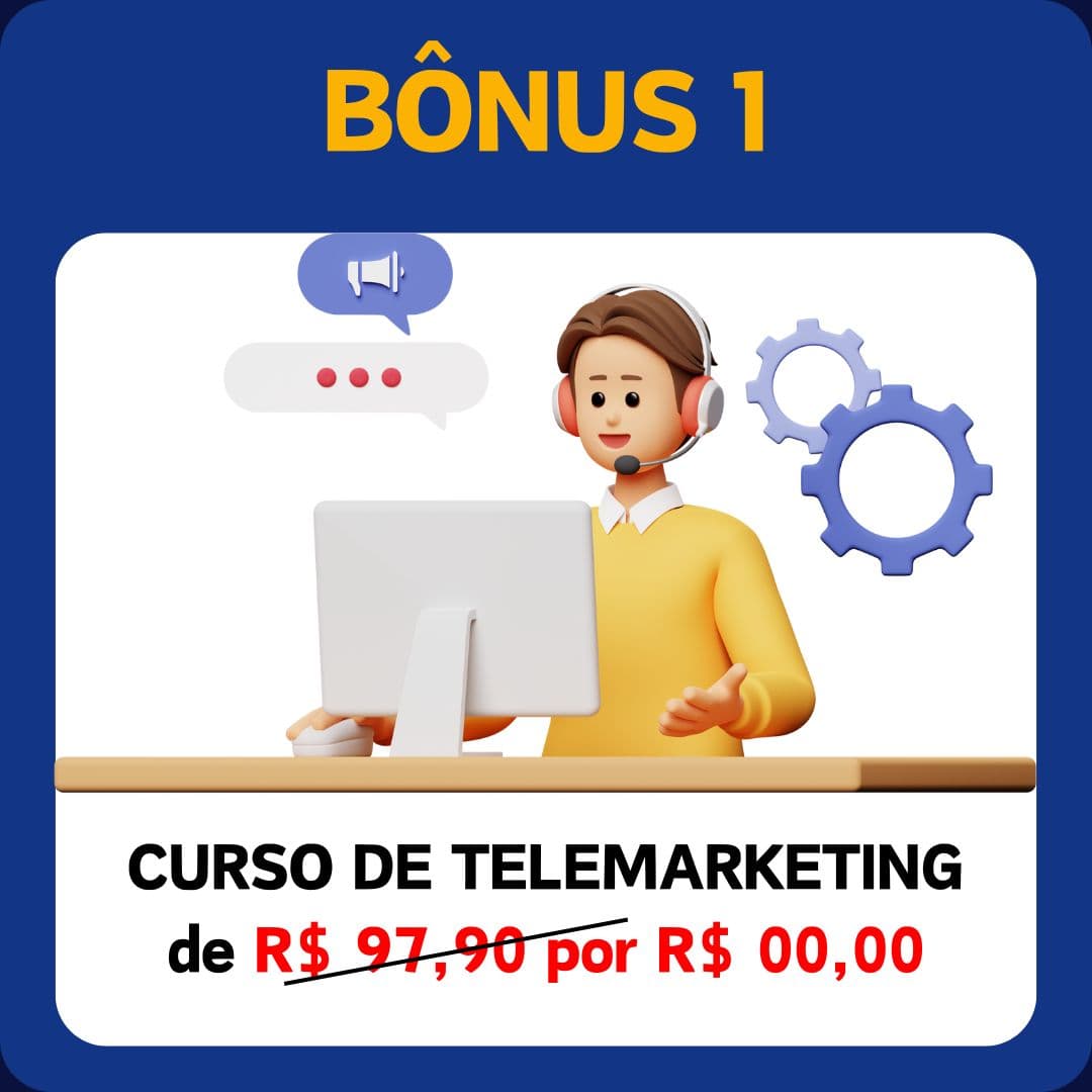 O curso de telemarketing é um super BÔNUS que vai te ensinar a fazer o atendimento dos seus clientes de maneira formal e profissional.